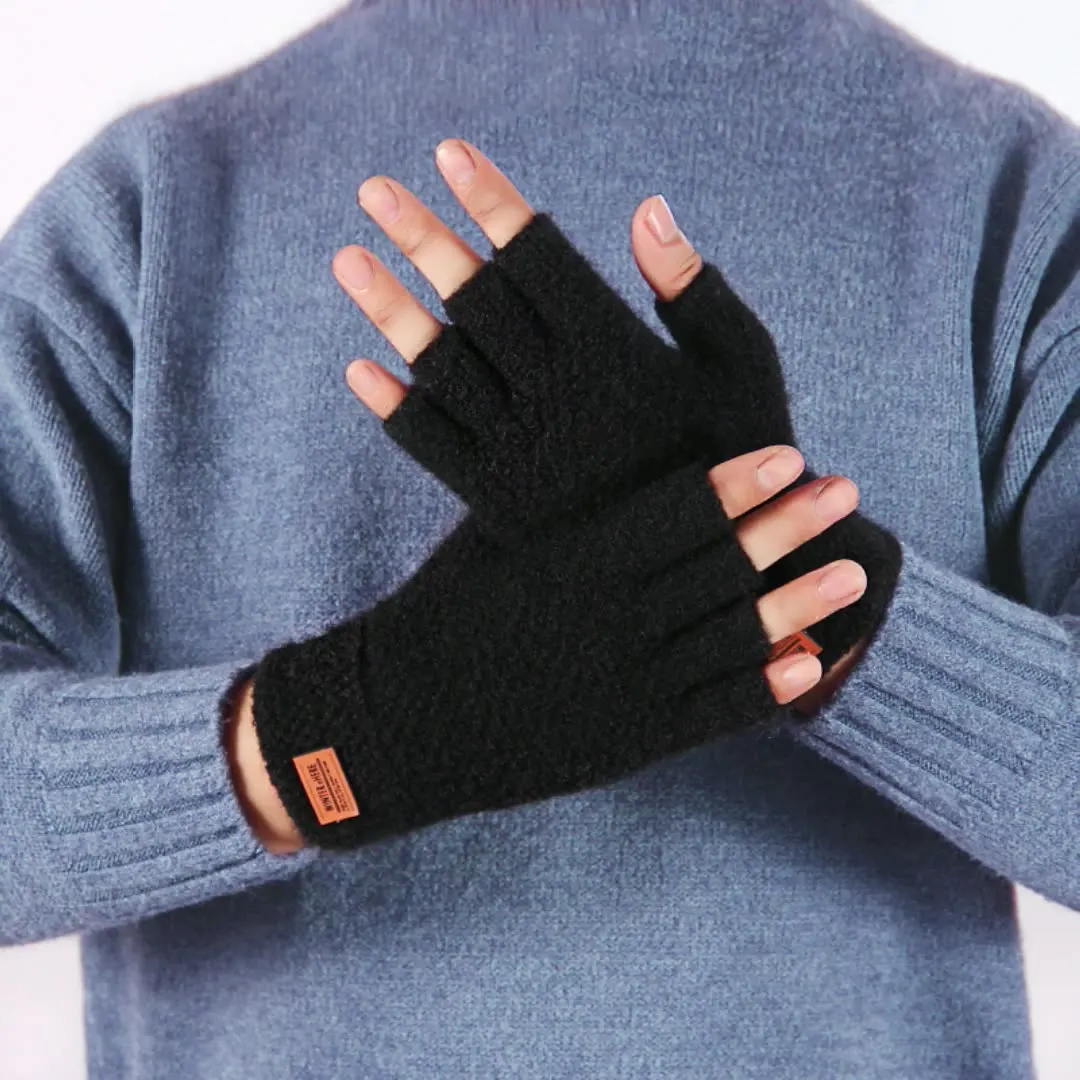 Перчатки с открытыми пальцами для женщин и мужчин, вязаные плотные ...
