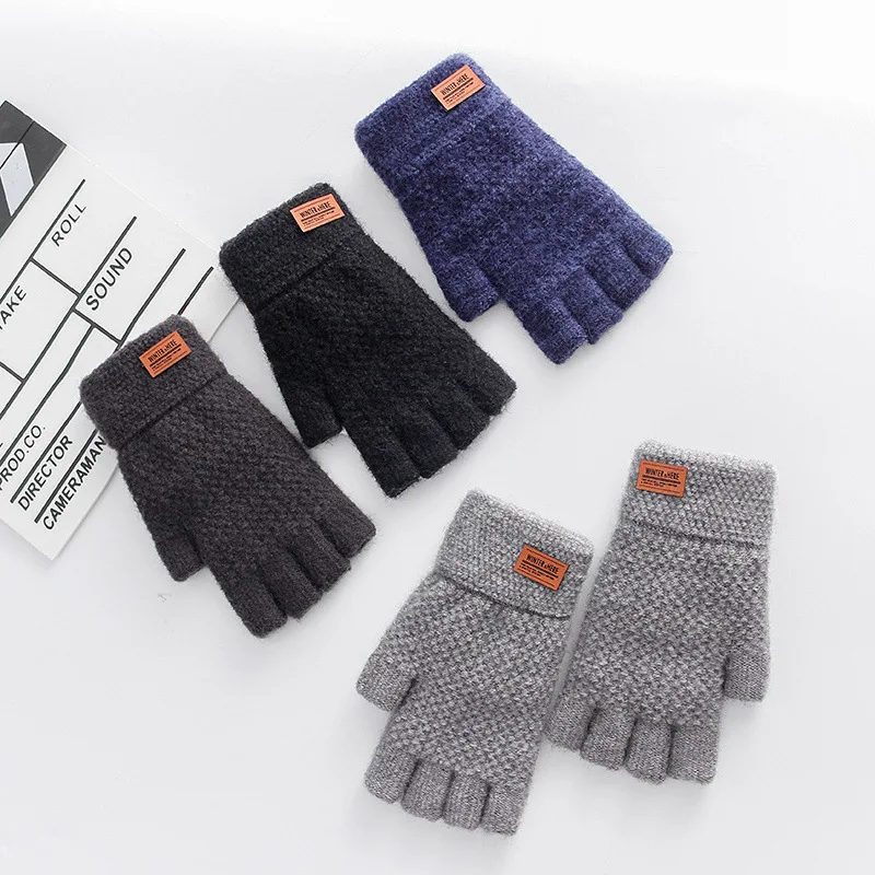 Зимние перчатки без пальцев для мужчин, офисные вязаные шерстяные т...