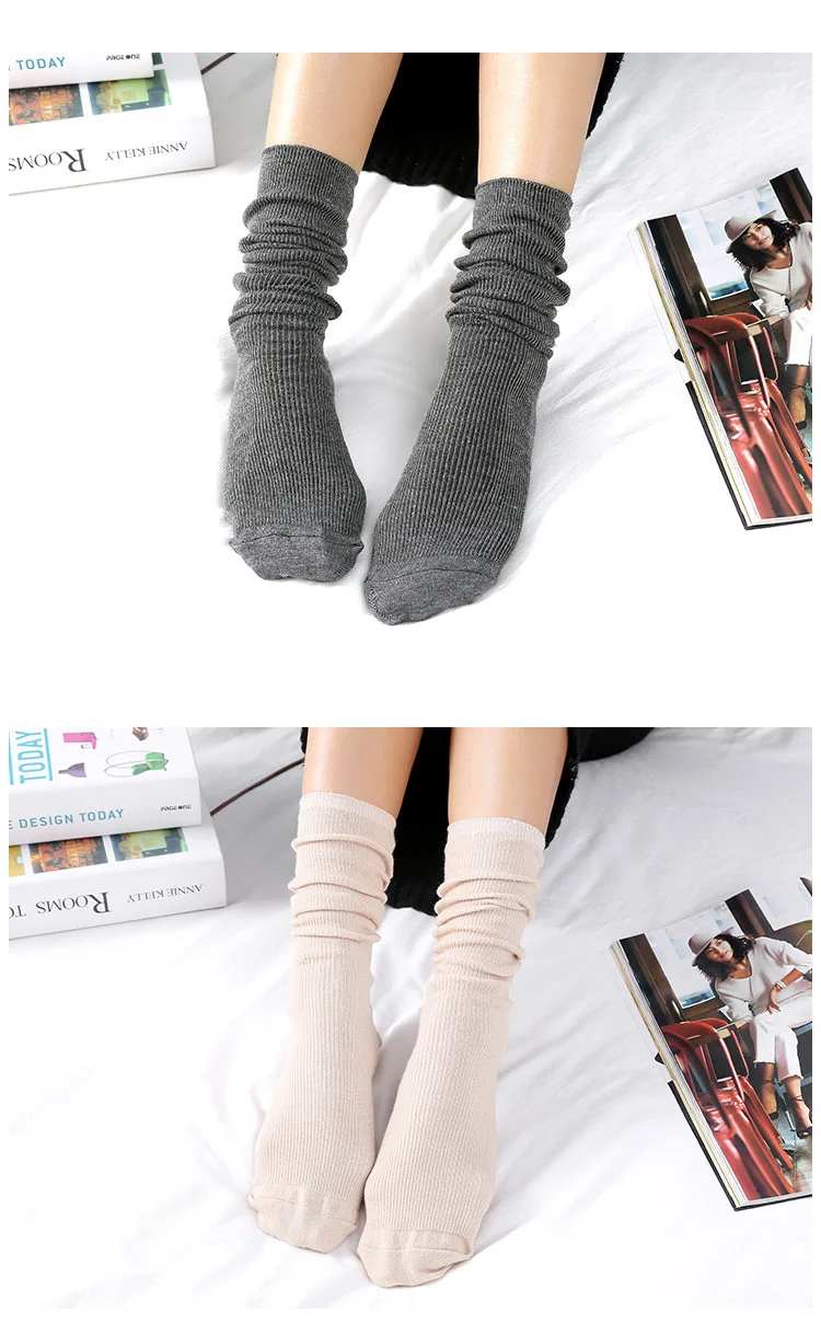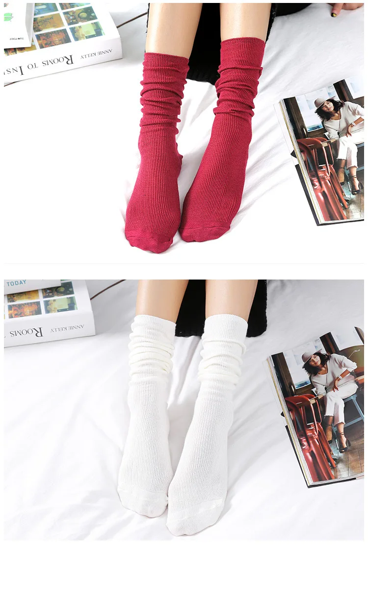 Японские корейские высокие носки для школьниц, свободные однотонные...
