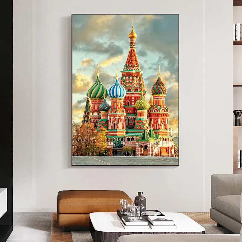 Холст с изображением российского собора святого базилика, Постер и принты, европейская Красивая архитектура, Настенная картина для домашнего декора