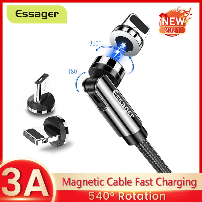 Магнитный кабель Essager с поворотом на 540 градусов для IPhone, Xiaomi, Samsung, кабель для быстрой зарядки и передачи данных, кабель Micro USB Type-C, провод для телефона, шнур