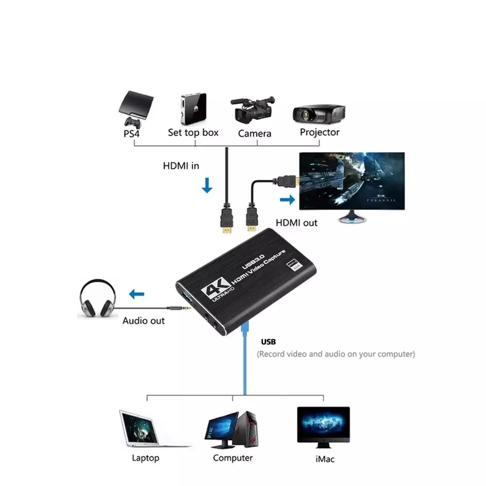 4K HDMI-USB 3,0 видеокарта для захвата видео, видеорегистратор для ...