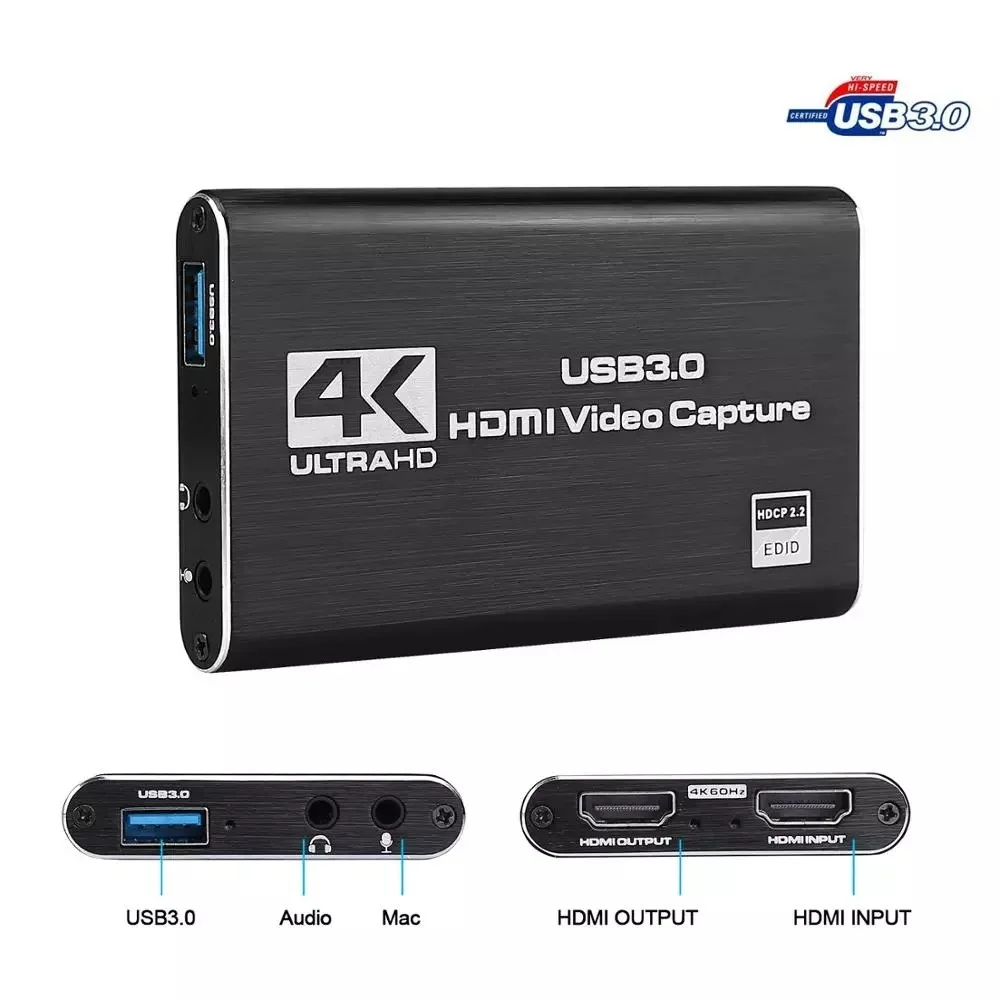 Карта видеозахвата 4K USB3.0 HDMI, карта захвата в реальном времени для видеоигр, карта захвата USB 2,2, поддержка захвата HDMI HDCP