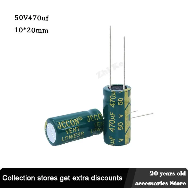 20 шт., алюминиевый электролитический конденсатор с низким ЭПС, 50 в, 470 мкФ, 10*20 мм, 470 мкФ, 50 в, электрические конденсаторы, высокая частота 20%