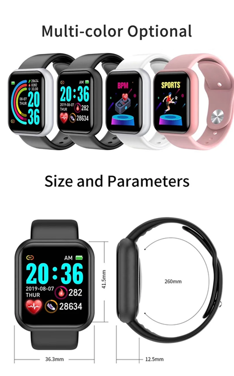 Характеристики:Тип: умные часыМатериал: ТПУЦвет: черный/розовый/белыйЕмкость аккумулятора: 150 мАчРазмер экрана: 4,15*3,63 см/1,63*1,43 дюймаУпаковка Размеры: 12,2*8,1*3,2 см/4,79*3,18*1,26 дюймовВес нетто: 45,0 г/1,59 унций