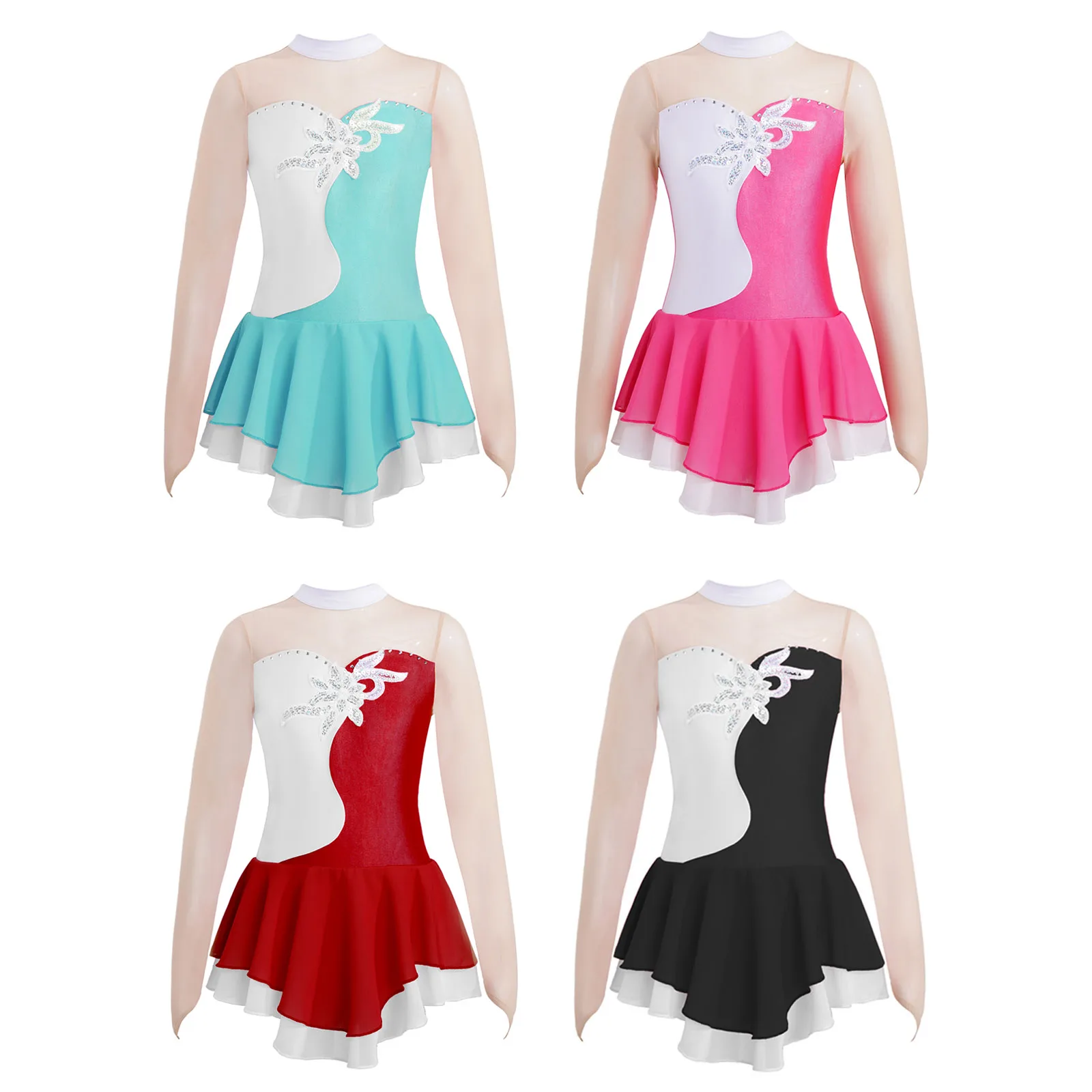 Детское платье с блестками для девочек, танцевальный костюм для гимнастики