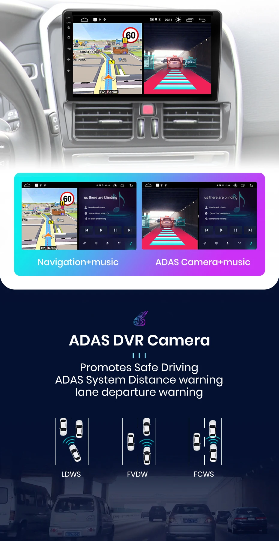 1. Голосовое управление AI: Просто скажите, что командное слово контролирует радио без рук, сделайте привод более безопасным2. ADAS DVR камера, контроль давления в шинах, OBD2, внешний микрофон, RCA кабель;