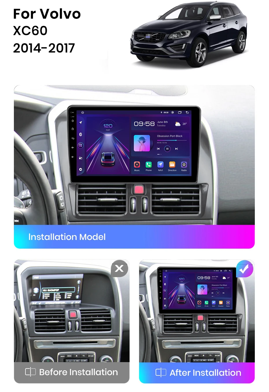 Original radar displayingSupport For Volvo XC60 2014 - 2017