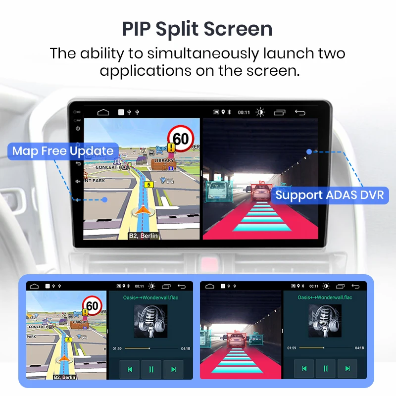 Вы можете использовать навигацию и другие приложения одновременно, такие как прослушивание музыки или включение функций ADAS и т. д.