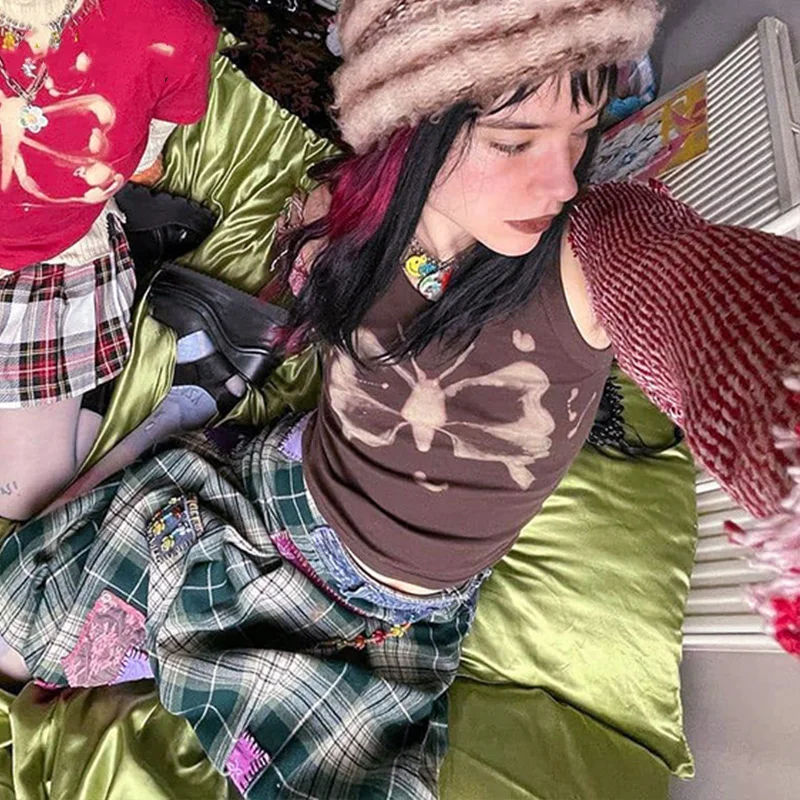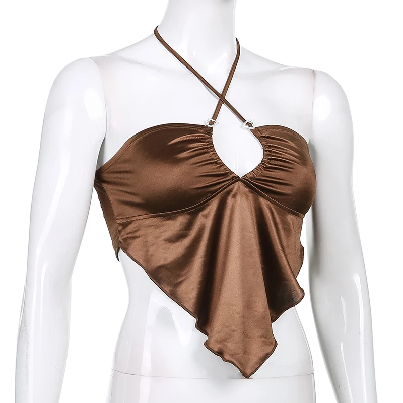 Новинка 2022, Женский пикантный коричневый топ на бретельках Y2K, эстетичный короткий жилет без рукавов с открытой спиной и лямкой на шее, Винтажная летняя майка для E-girl, одежда 90-х годов