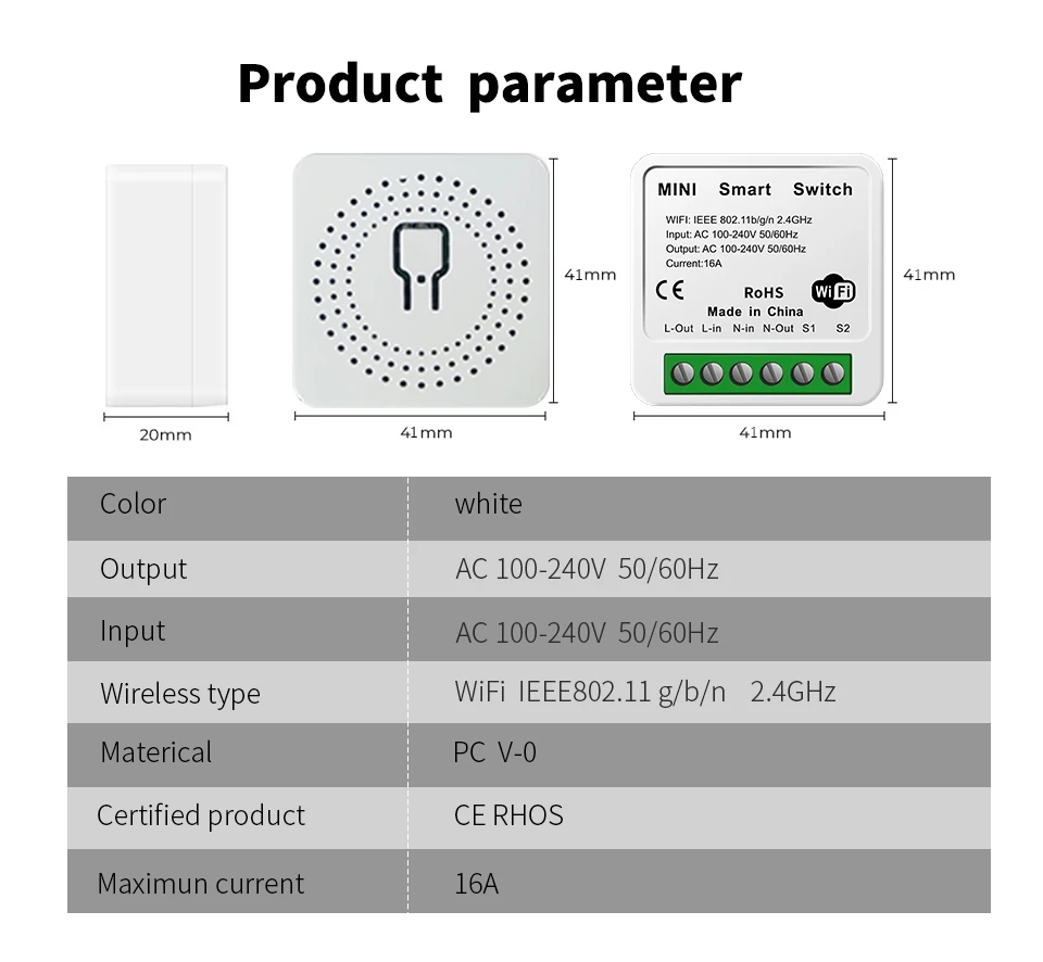 Мини смарт-коммутатор (16A), который можно использовать на светильник лампы, вентиляторы, увлажнитель, термостат, электрический чайник, гаражных ворот, Кофеварка и т. д, чтобы вы могли включить или выключить устройство на свой мобильный телефон.