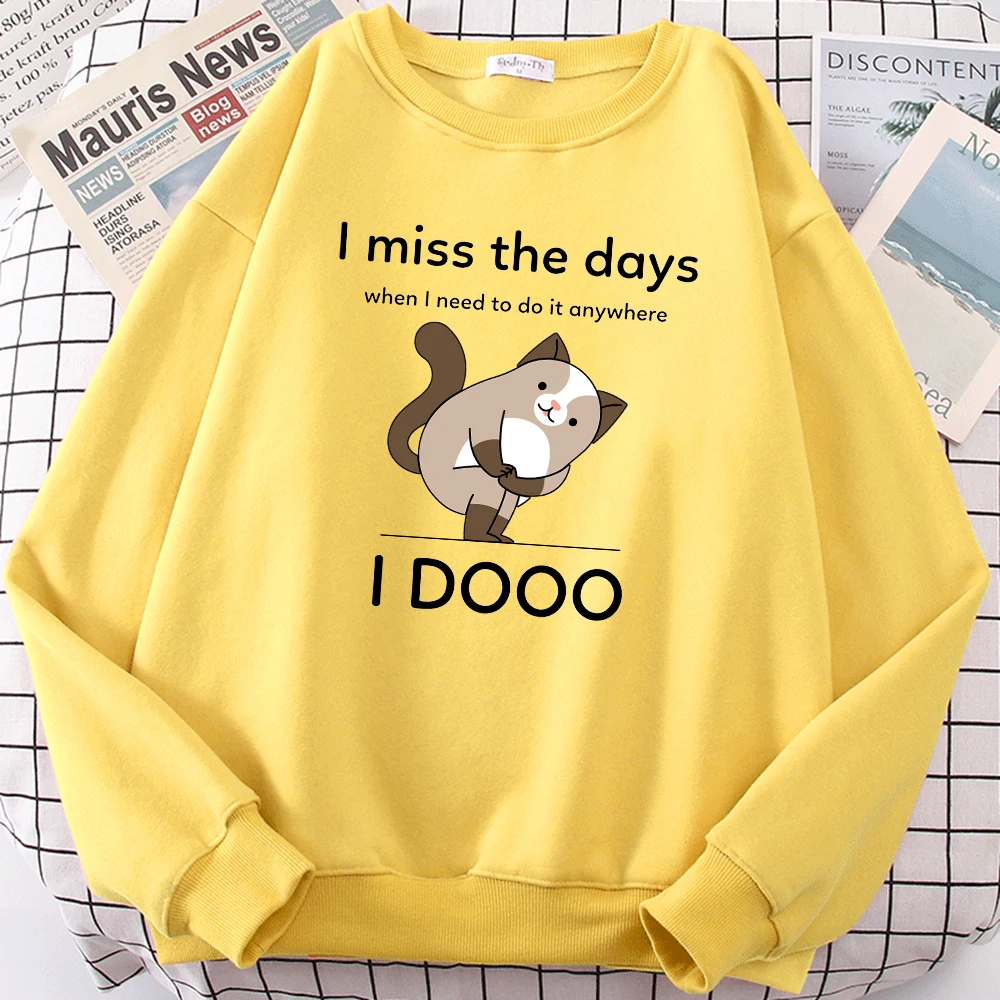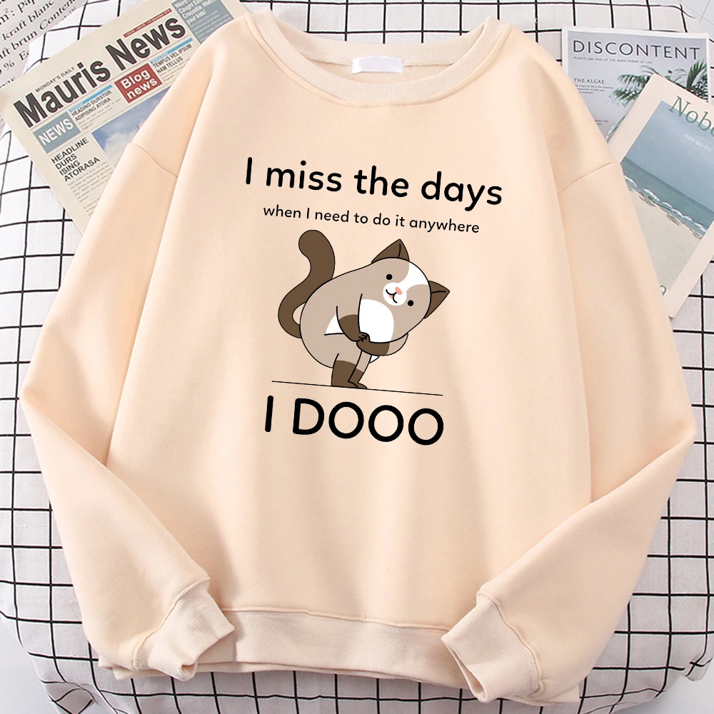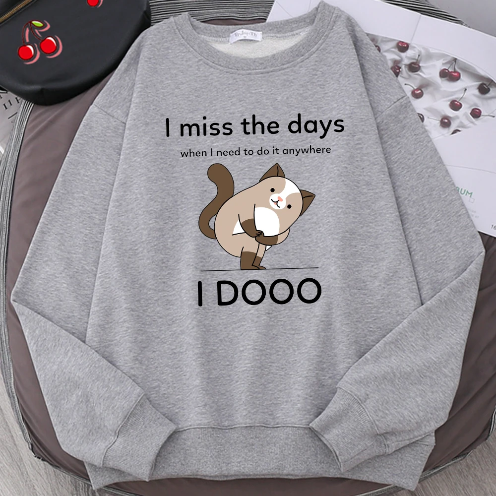 Женские свитшоты с принтом Cat Say I Miss The Days, пуловер оверсайз с круглым вырезом в стиле Харадзюку, Женский свитшот с милыми животными, новинка 2022