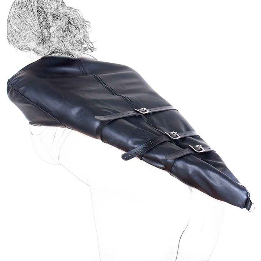 Секс игры БДСМ роль раба бандаж на ноги/бандаж для рук, сзади прямая куртка, прямая куртка, SM кожа нарукавник женский Sextoy