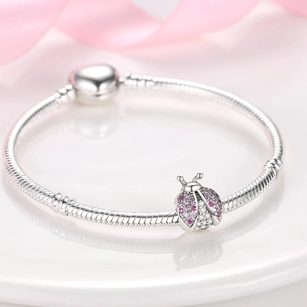 Оригинальные Серебряные Бусины-подвески в виде божьей коровки и сло...