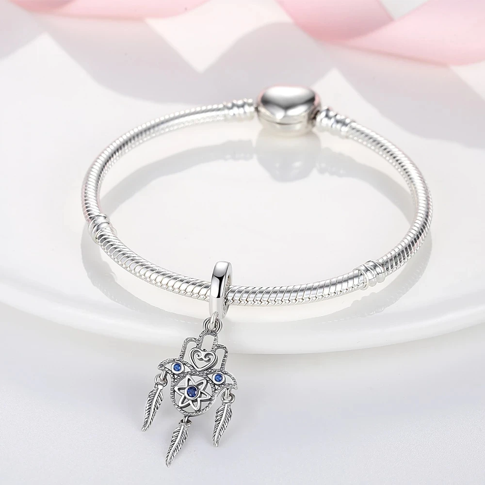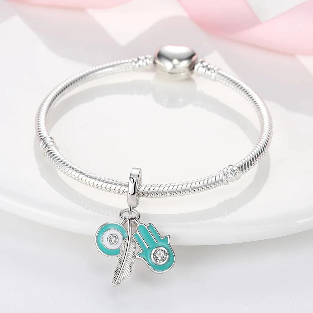 Новинка, серебро 925 пробы, подвеска в виде животного, сердца, Hamsa, оригинальный браслет Pandora, Изящные Ювелирные изделия, сделай сам, подарок