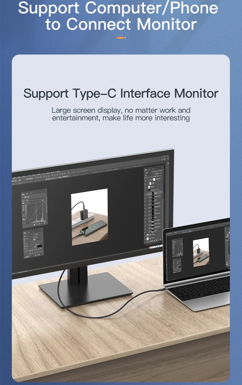 Поддерживает реальную зарядку PD, применимую к ноутбукам с Type-C, с той же скоростью зарядки с оригинальным зарядным устройством.