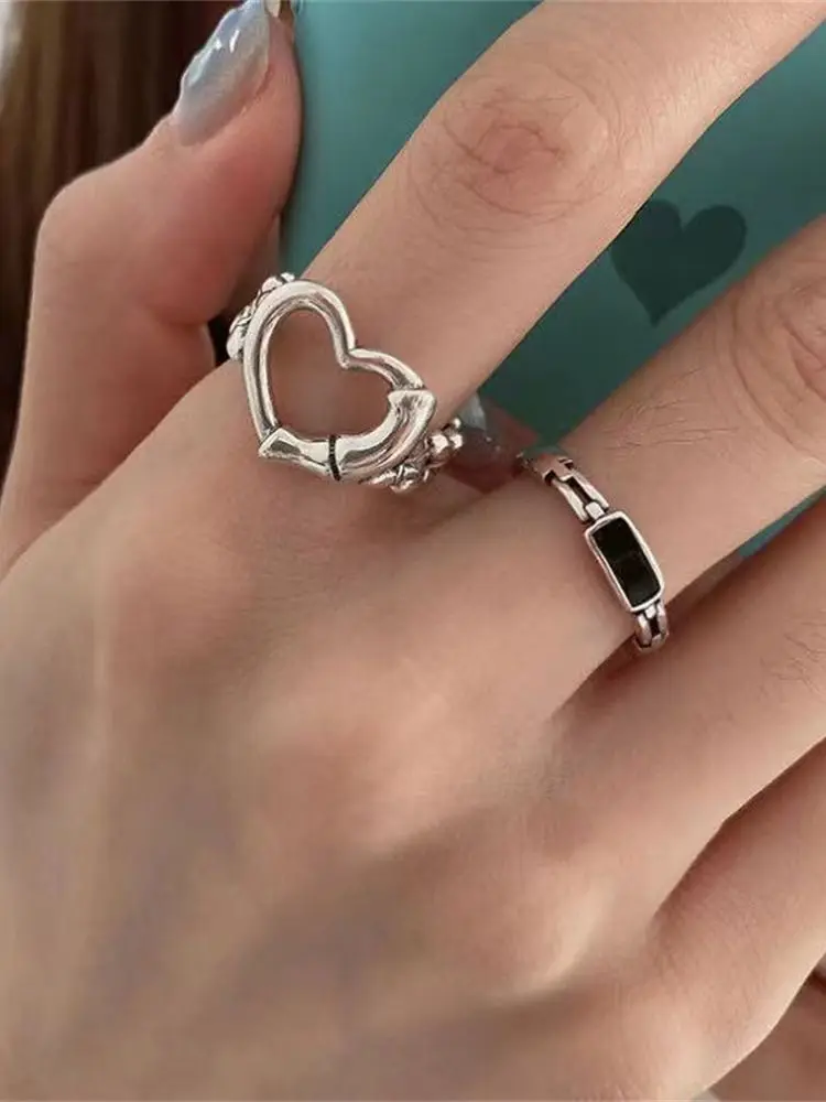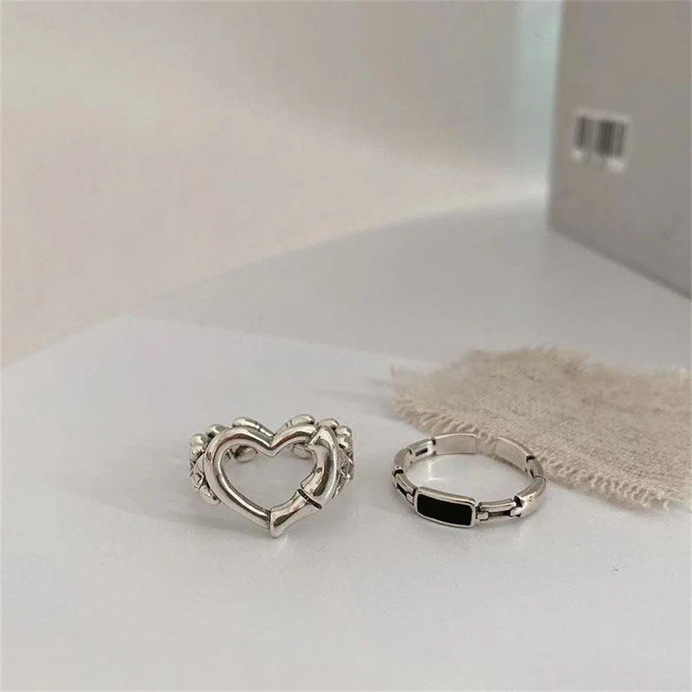 Модные корейские кольца в форме сердца, набор минималистических эстетических капель, ювелирные изделия из масла, открытое широкое кольцо, ювелирные изделия для женщин, вечерние, крутые аксессуары
