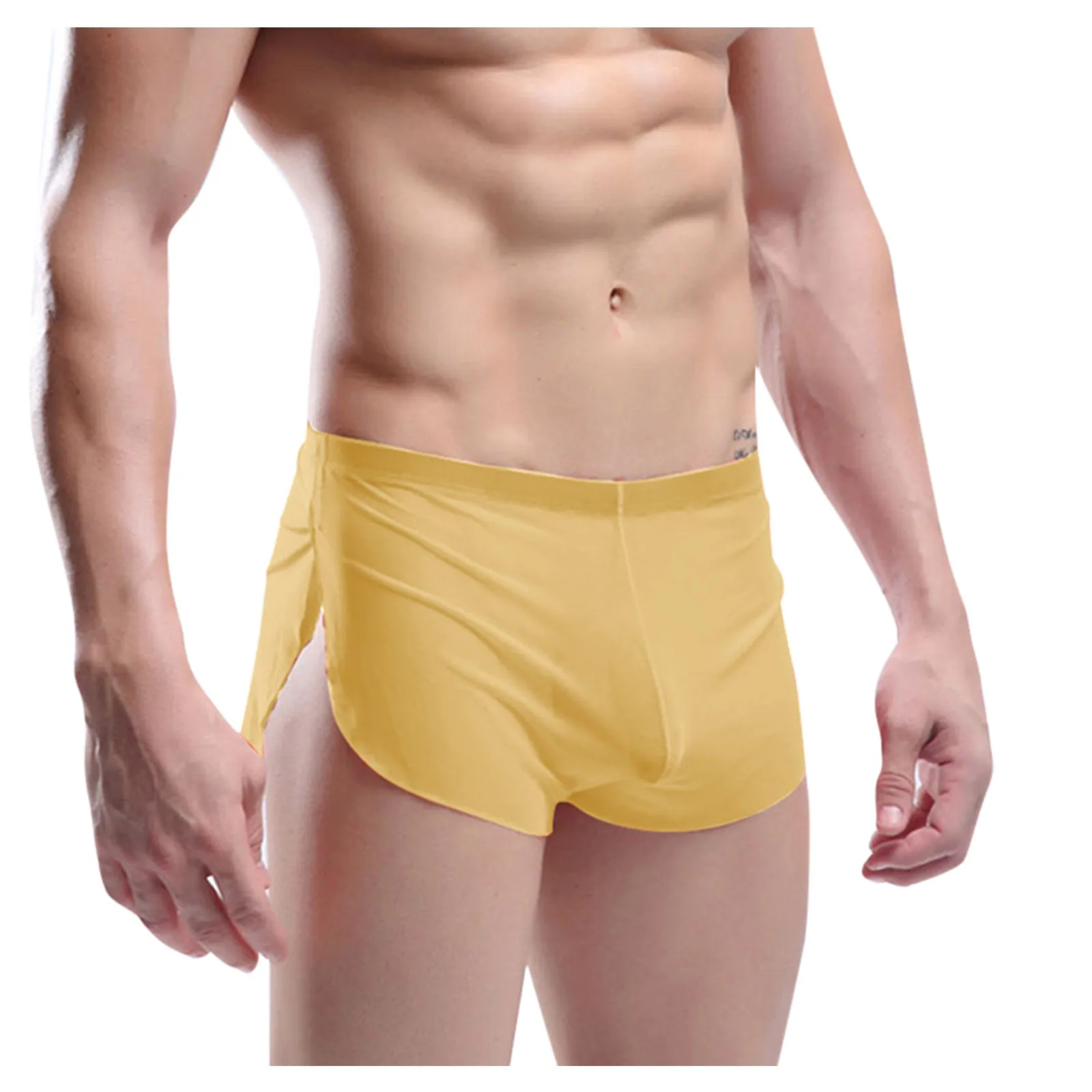 Нижнее белье для мужчин, хлопковые сексуальные мужские боксеры, шорты, трусы, дышащие мужские трехточечные шорты с карманом, шелковые мужские шорты