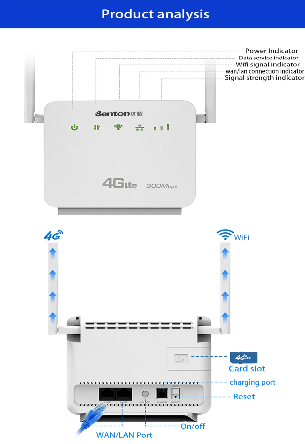 -4G WiFi роутер обеспечивает скорость беспроводной передачи данных до 300 Мбит/с-Производить 2,4 ГГц WFi hotspot с мощным 300 Квадратный метр покрытие сигнала Wi-Fi-Доступ к Интернет-соединению достигает 32 пользователей WiFi-Внутренняя двойная антенна, выбор сигнала 4G / 3G-Стильный и тонкий дизайн идеально сочетается с вашим домом-Светодиодный индикатор, просматривать статус легко