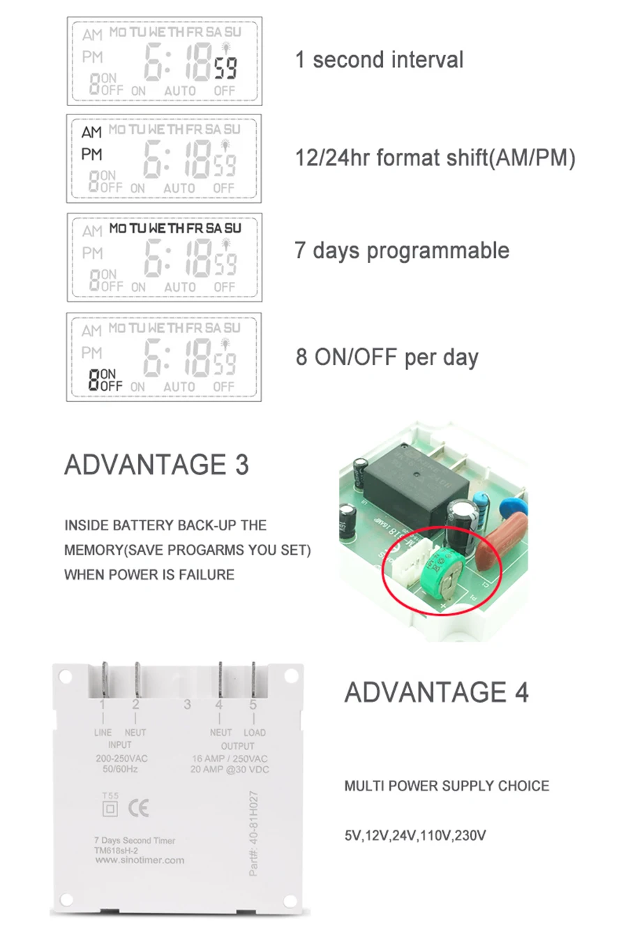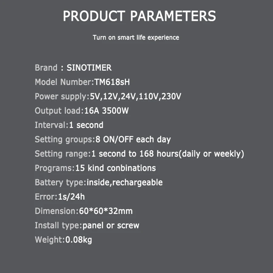 SINOTIMER 1,6 дюймов Большой ЖК-дисплей TM618sHВторой модуль таймераЕженедельный программируемый
