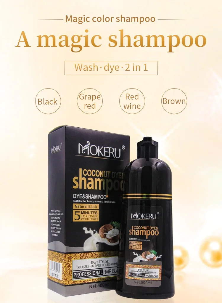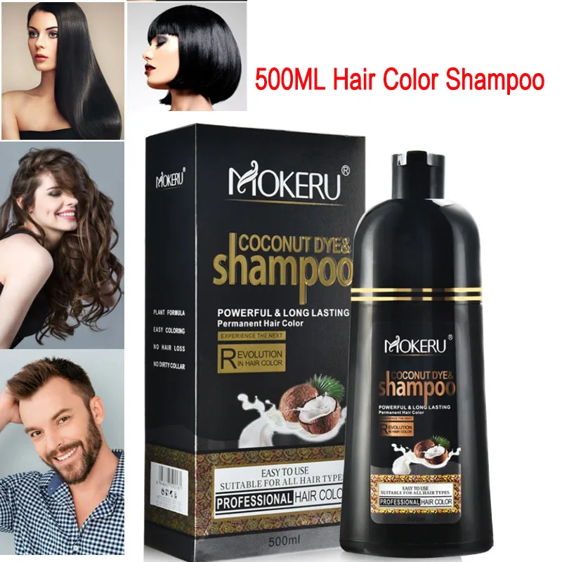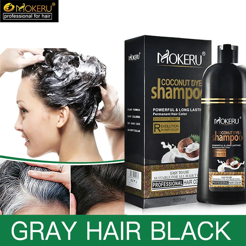 Натуральная Органическая Кокосовая масляная эссенция Mokeru, шампунь для окрашивания черных волос, шампунь для перманентной краски серых волос, 500 мл