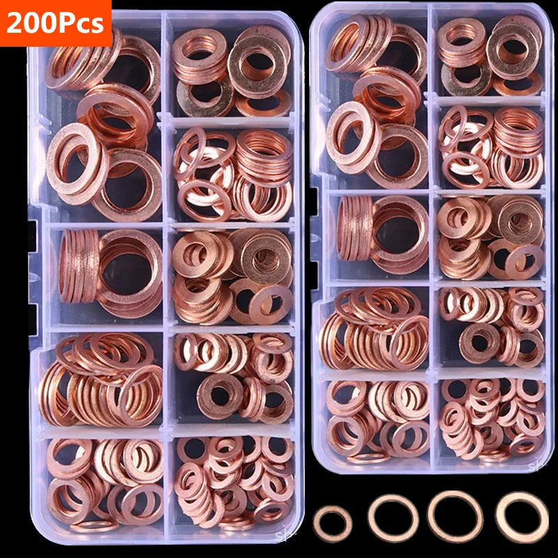 Набор медных шайб, уплотнительных гаек и болтов, набор плоских колец в ассортименте с коробкой M8M10M12M14 для пробки отстойника