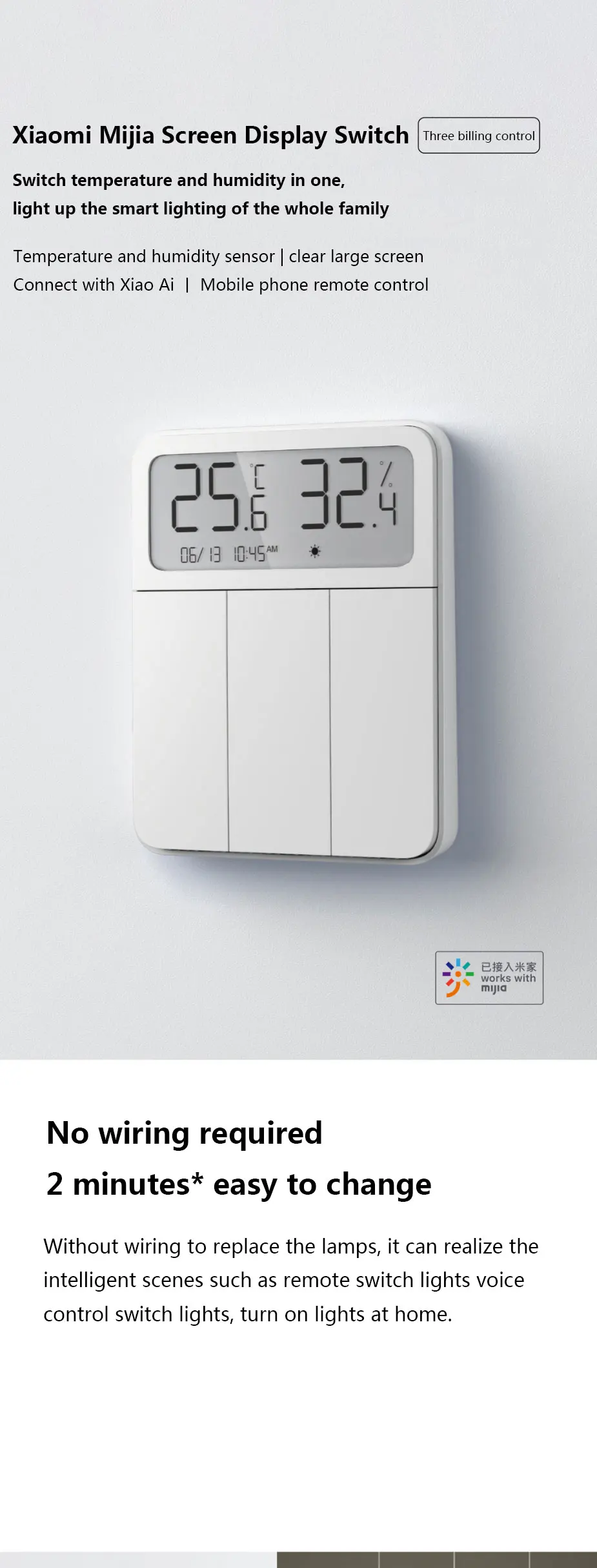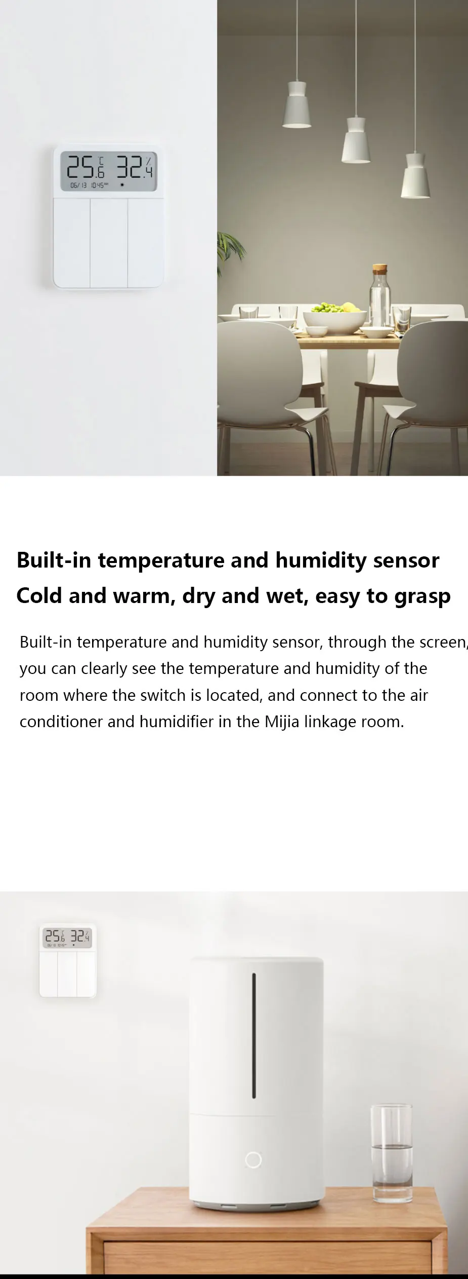 Умный 3-кнопочный переключатель Xiaomi Mijia, Bluetooth сетчатый датчик температуры и влажности, кнопка включения для умного дома