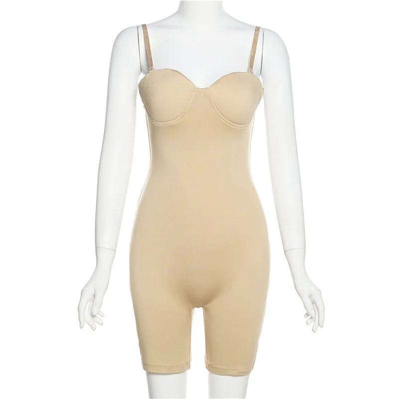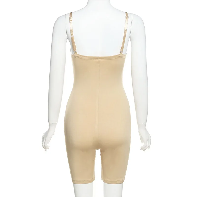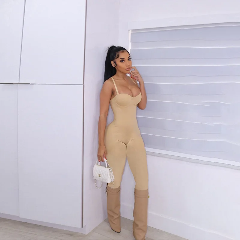 Сексуальный женский комбинезон с низким вырезом, однотонный комбинезон без рукавов, популярный женский комбинезон без бретелек, цельный тонкий облегающий костюм