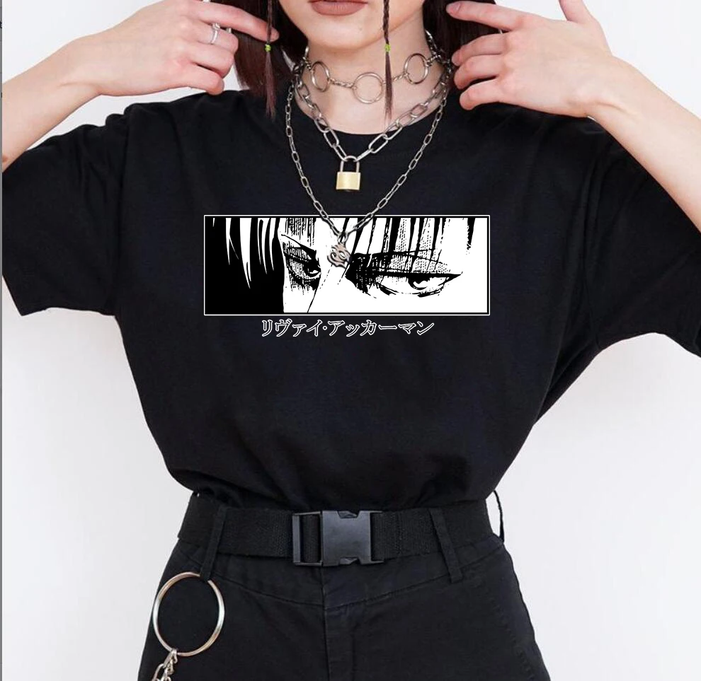 Аниме футболка атака на Титанов футболка Levi Ackerman глаз принт ...