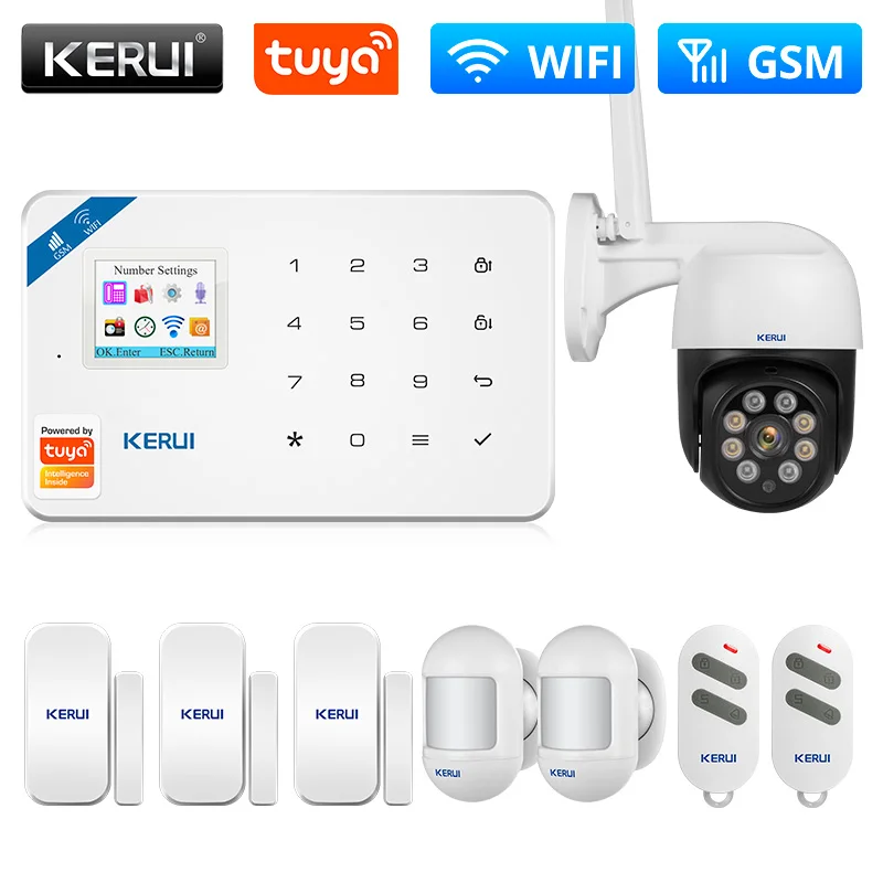 KERUI W181 система сигнализации WIFI GSM Tuya умная беспроводная домашняя сигнализация Поддержка Alexa датчик движения датчик двери окна ip-камера