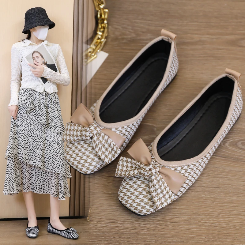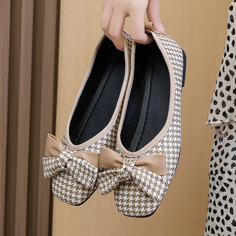 Женские балетки с бантом, желтые туфли-лодочки из жаккардовой ткани...