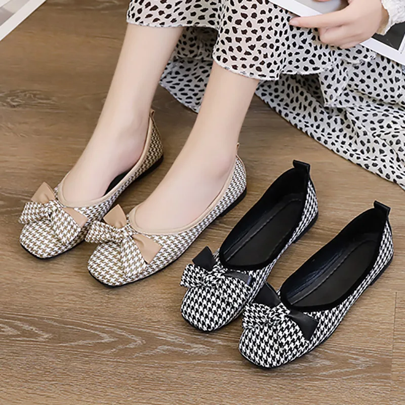 Женские клетчатые туфли на плоской подошве, размеры до 41