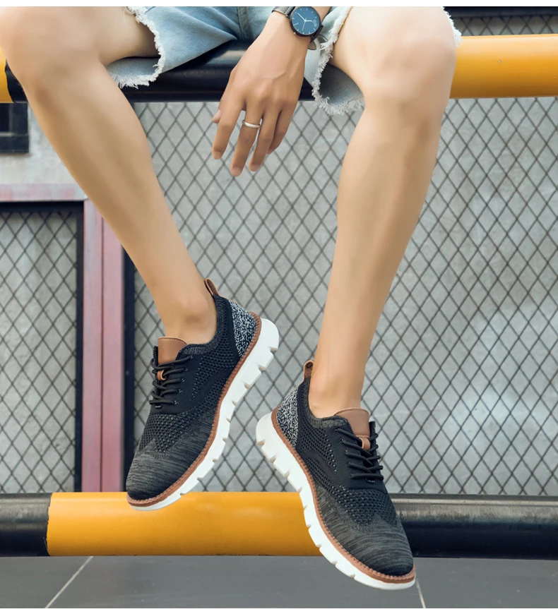 Легкие мужские туфли на шнуровке, летняя обувь в британском стиле, дышащие вязаные сетчатые туфли на плоской подошве, стиль рок