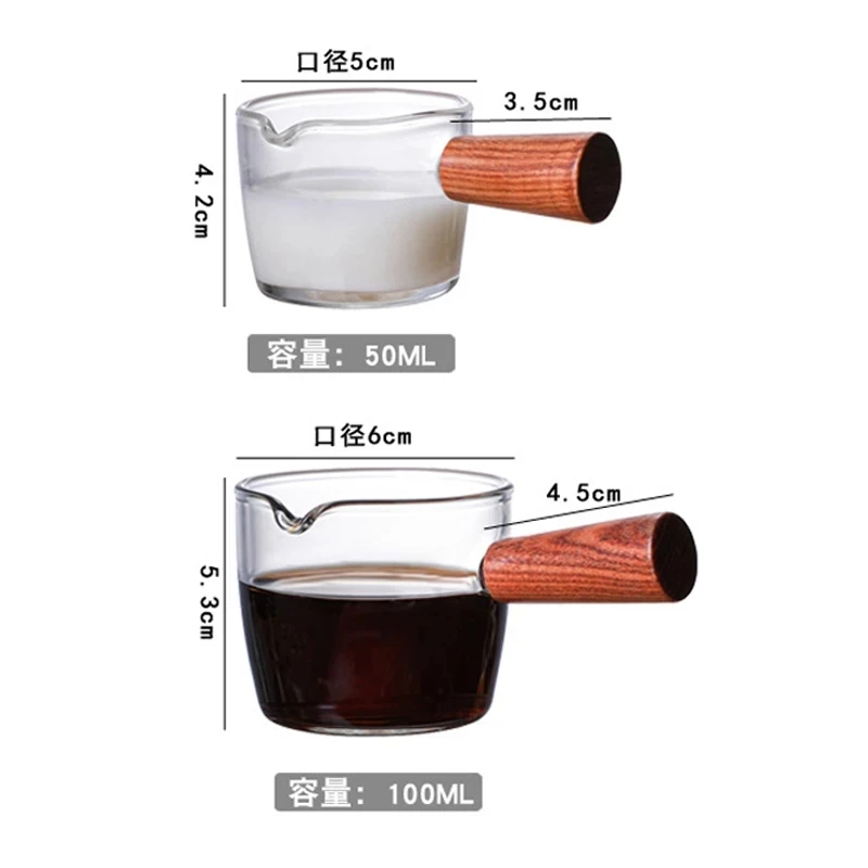 Утолщенная стеклянная чашка с деревянной ручкой для эспрессо, кофей...