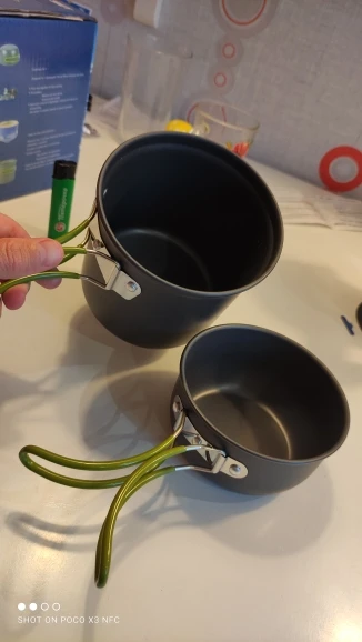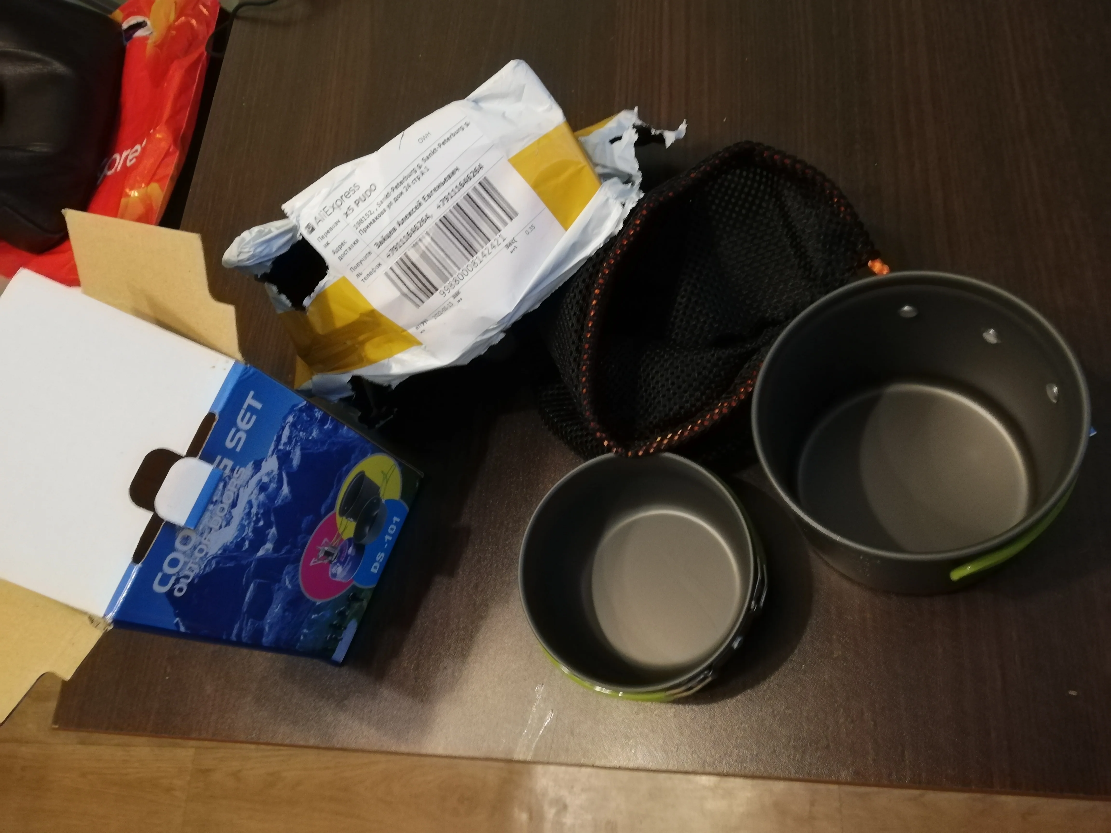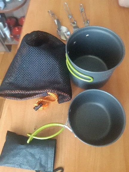 Хороший набор для походов, легкий и компактный, на двух человек вполне хватит. Из минусов только неприятный запах посуды, который, надеюсь, пройдёт после мытья.