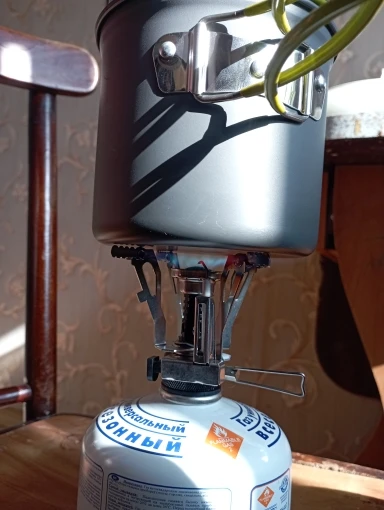 Очень хорошая посуда, не металл или алюминий дешево, разминать не так просто. Стандартный размер для газовых картриджей NTK