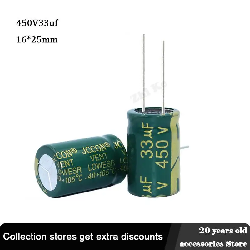 10 шт., алюминиевый электролитический конденсатор 33 мкФ 16*25 мм с низким ESR, электрические конденсаторы 33 мкФ 450 в, высокая частота 450