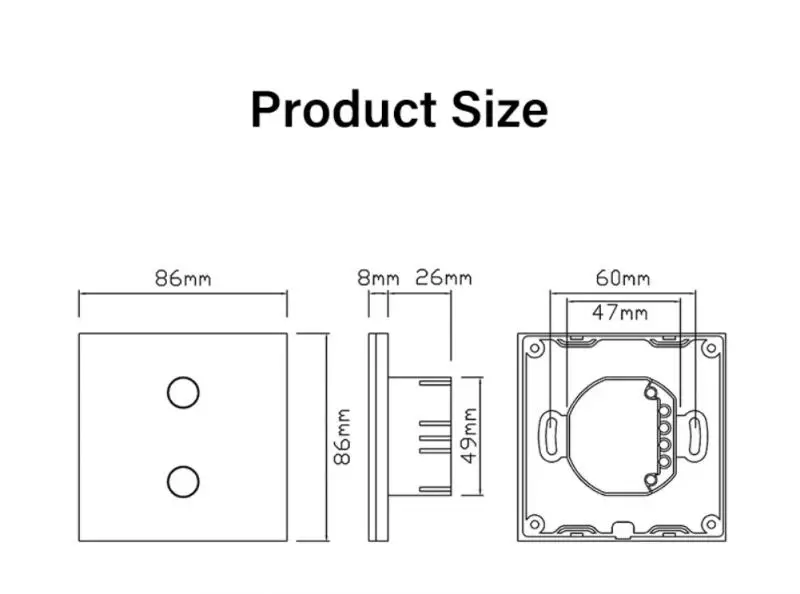 Примечание: ЕС квадратный (86 мм * 86 мм)