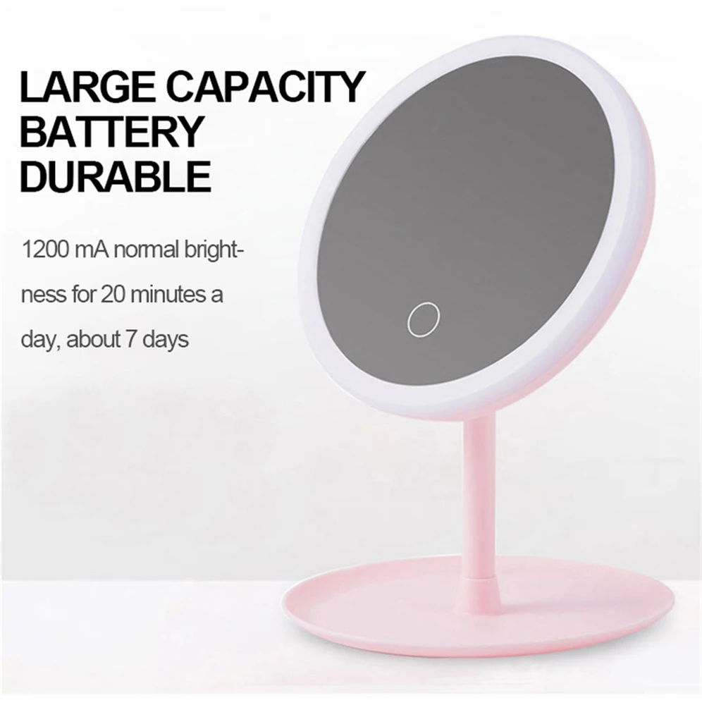 Светодиодное зеркало для макияжа с подсветкой, Настольный Вращающийся светильник для косметики с регулируемым затемнением, USB, для туалетного столика