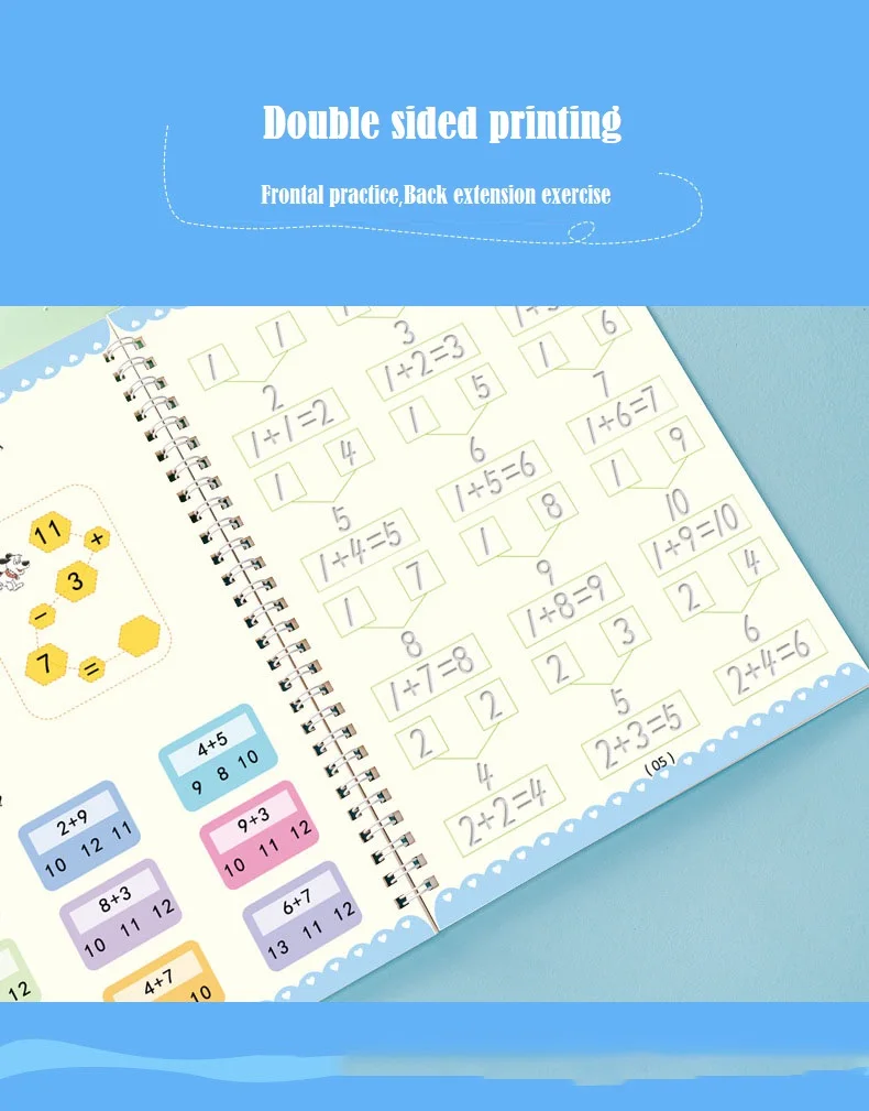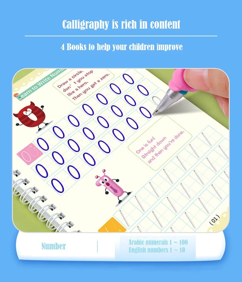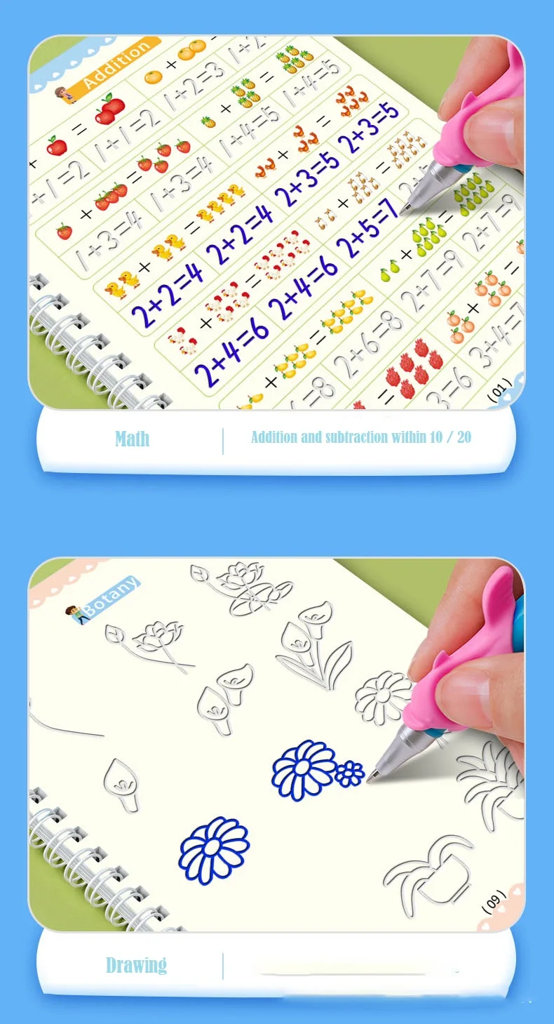 4 книжки многоразовые для детей, 3d-тетрадь для обучения математике, каллиграфии, блокноты для рукописного письма, Волшебная книга для обучения письма для детей