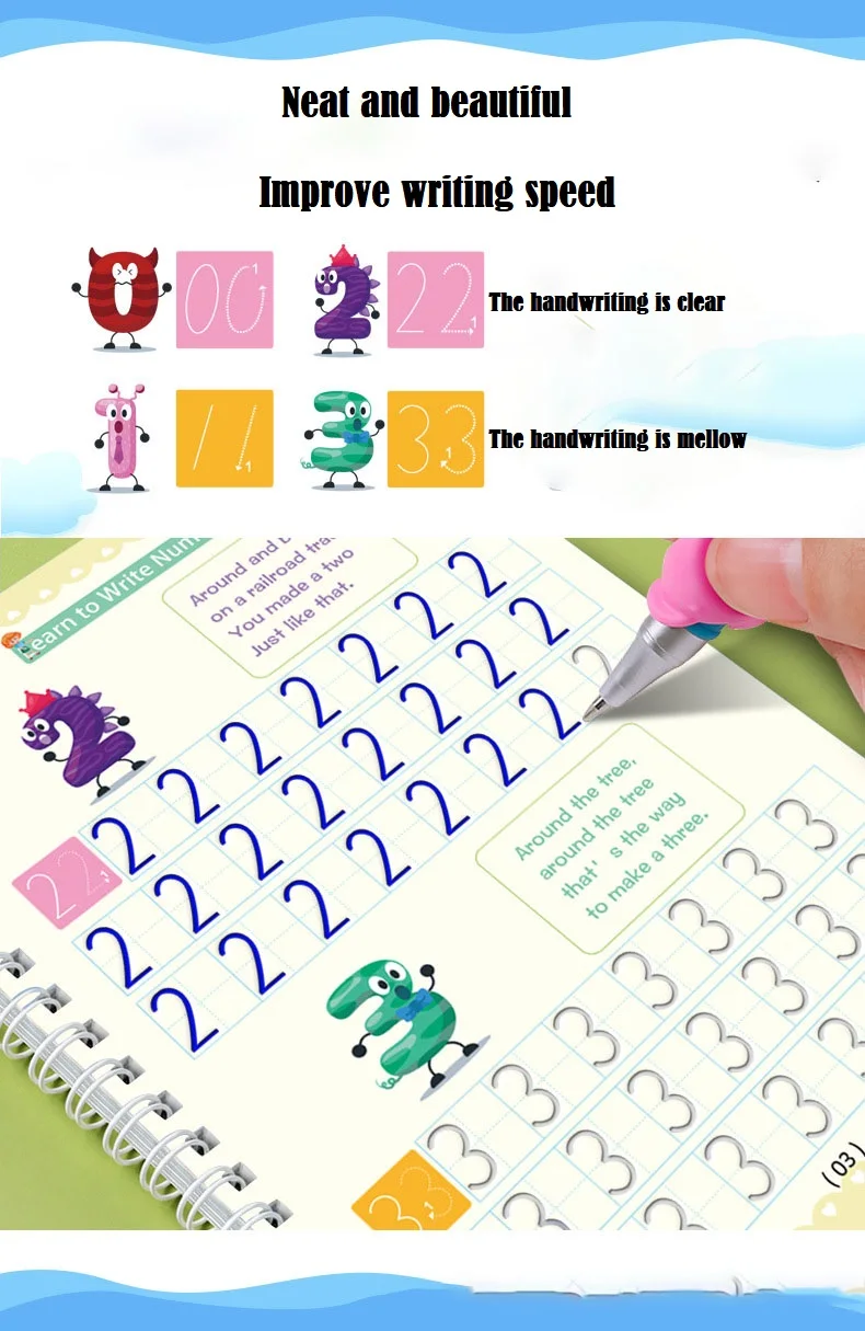 LE многоразовая детская тетрадь для каллиграфии с номерами 0-100, у...