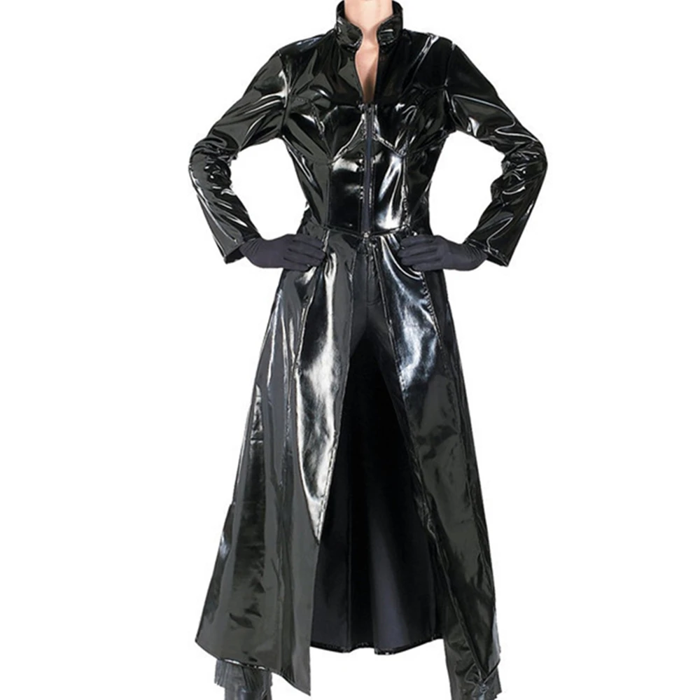 Длинное черное кожаное пальто Matrix Neo для мужчин и женщин, костю...