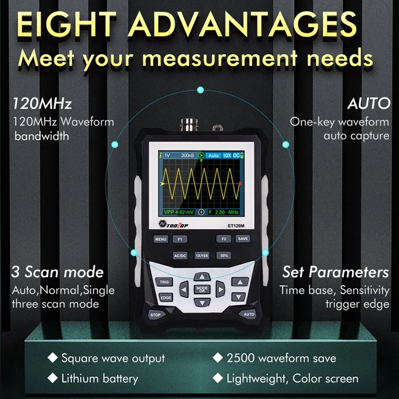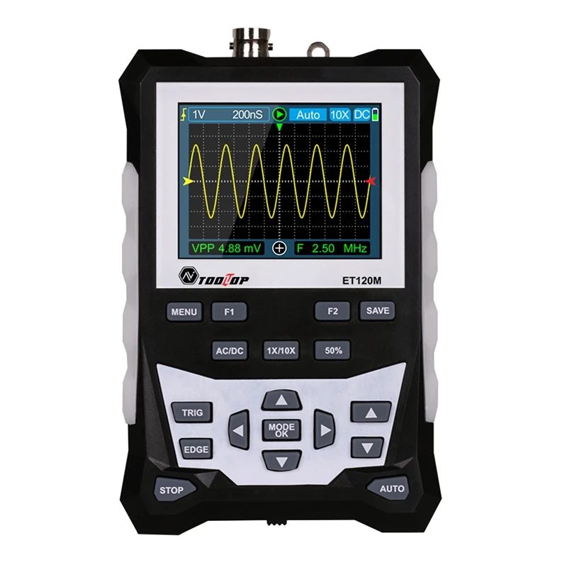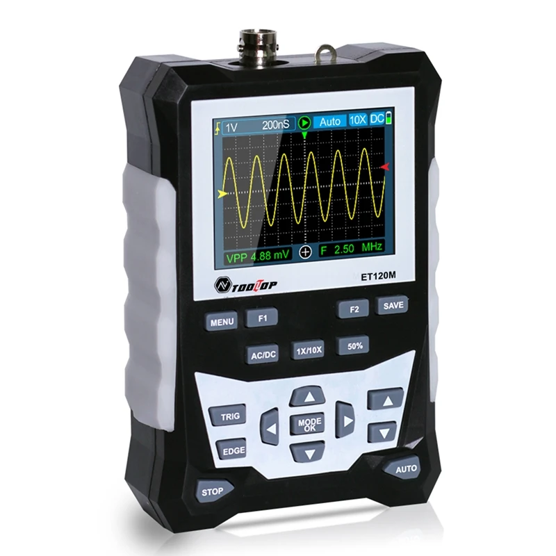 Цифровой осциллограф TOOLTOP ET120M, полоса пропускания 120 МГц, частота дискретизации Мвыб.с, профессиональный инструмент с подсветкой и функцией сохранения сигналов