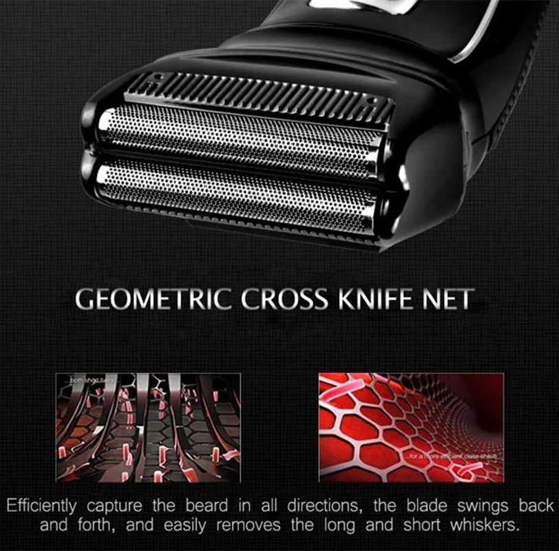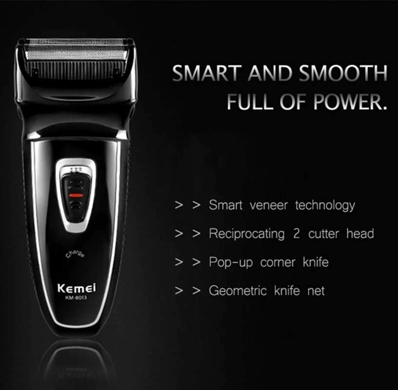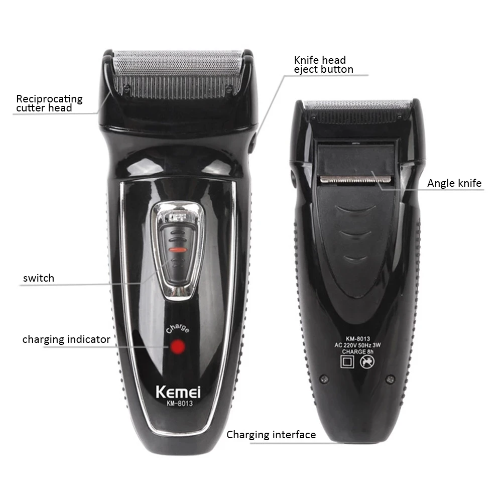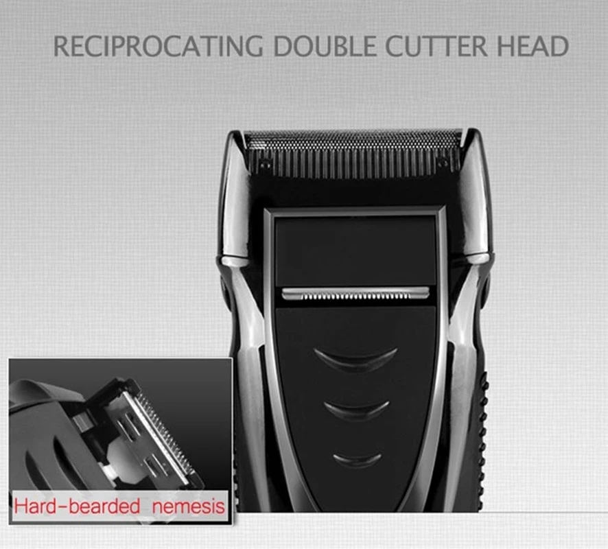 Перезаряжаемая бритва KEMEI с двумя головками, бритвенный станок с возвратно-поступательным движением, вращающийся триммер для волос, бритва для ухода за лицом