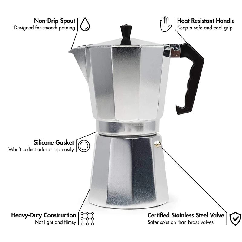 50-600 мл Алюминиевый кофейник мокко, кофейник, Классическая восьмиугольная форма, кухонные принадлежности, быстрая плита, кофейная посуда