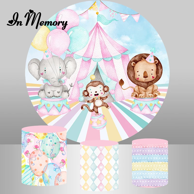Розовая цирковая палатка для девочек InMemory, круглая задняя крышка для вечеринки в честь Дня Рождения, с мультяшными животными, слоном, львом, бриллиантами, обложки