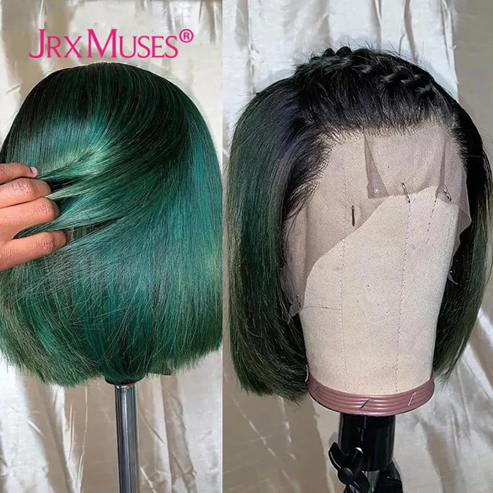 Темно-зеленые короткие парики с эффектом омбре, человеческие волосы...