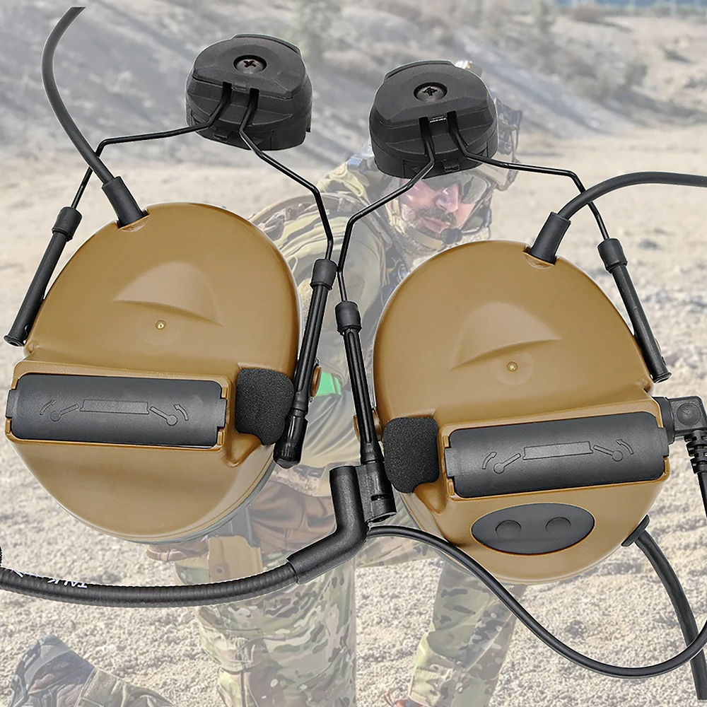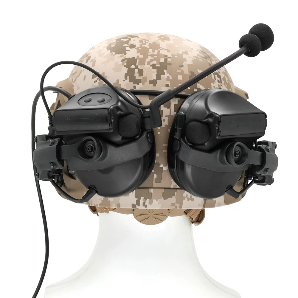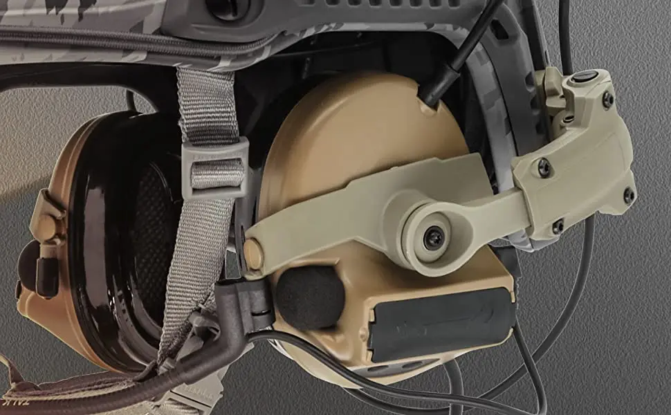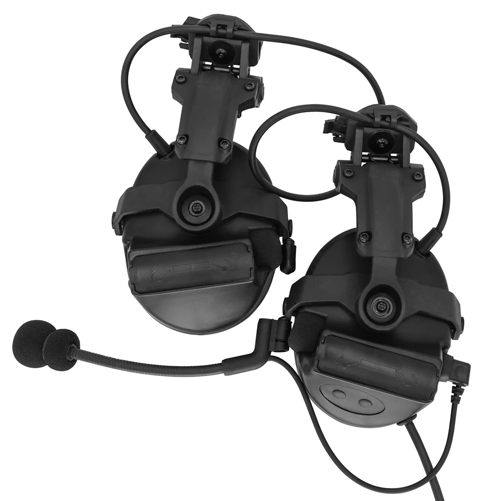 HearangelТактическая гарнитура Comtac ii с адаптером ARC rail, защитой слуха и гелевыми амбушюрами, звукоснимателями и шумоподавляющими наушникамиПримечание: В комплект поставки не входят шлемы.* ABS* Защита чипа-чип наушников COMTAC II хорошо защищен слоем пленки и обладает высокой защитой, плесени, пыли и влагостойкостью.* Изогнутая версия адаптера трека совместима с изогнутыми боковыми шлемами трека и может висеть за ушами, когда страйкбола гарнитуры не нужны, и амбушюры предоставляются.* Наушники Airsoft используют высококачественные мягкие звукоизоляционные гелевые амбушюры, которые удобны в использовании, имеют хорошую звукоизоляцию и обеспечивают хорошую среду общения.* Два микрофона слева и справа, электронная функция автоматического захвата, наушники дополнят экологические звуки, такие как звуки ног, вместо того, чтобы полностью изолировать внешние звуки.* Тактические гарнитуры идеально подходят для тактических игр, занятий страйкболом, стрельбы или для тех, кто хочет общаться в шумной среде.* Защита слуха может предотвратить внезапные выстрелы и взрывы. И автоматически отключает функцию пикапа, эффективно снижает шум окружающей среды, используйте 2 батарейки АА (не входят в комплект).