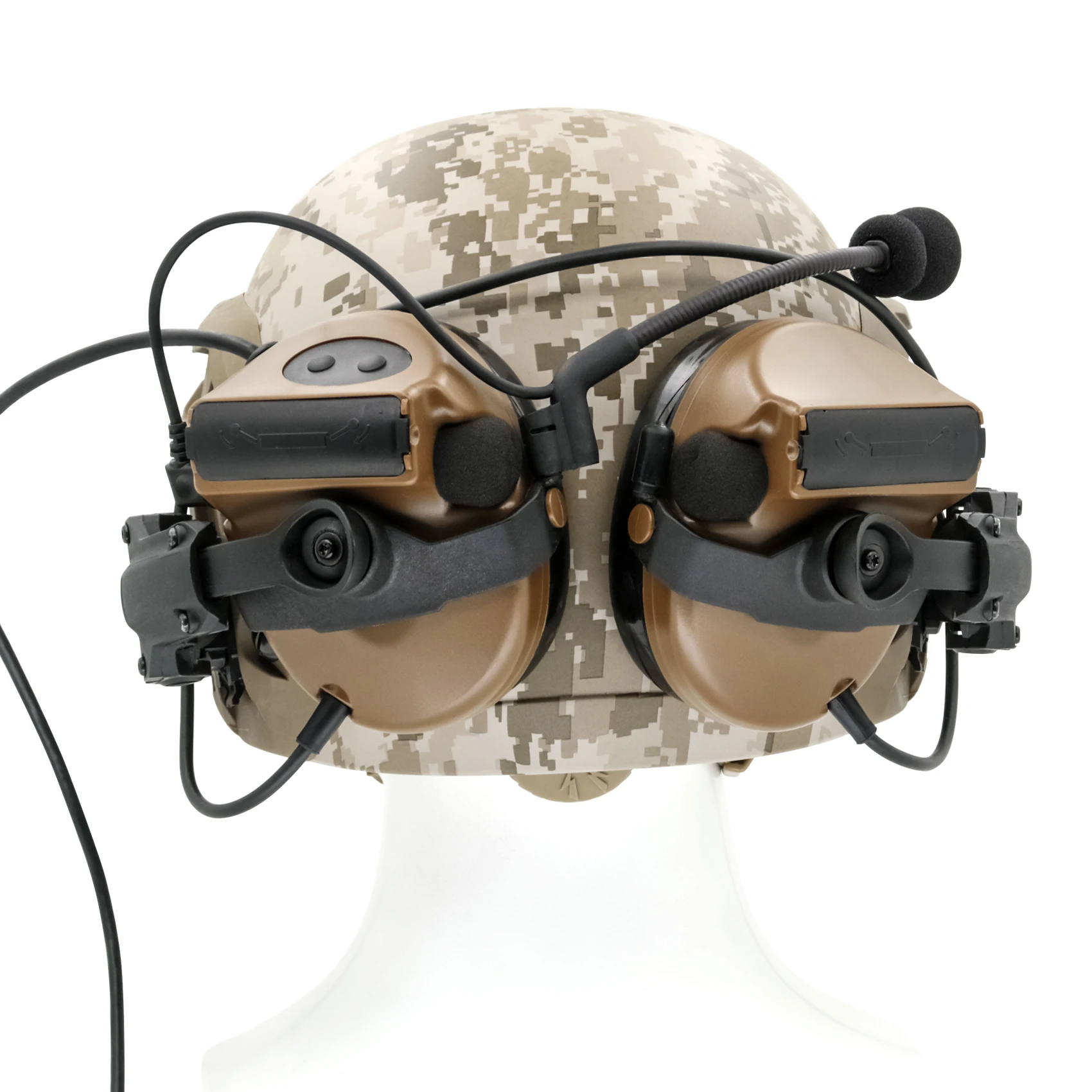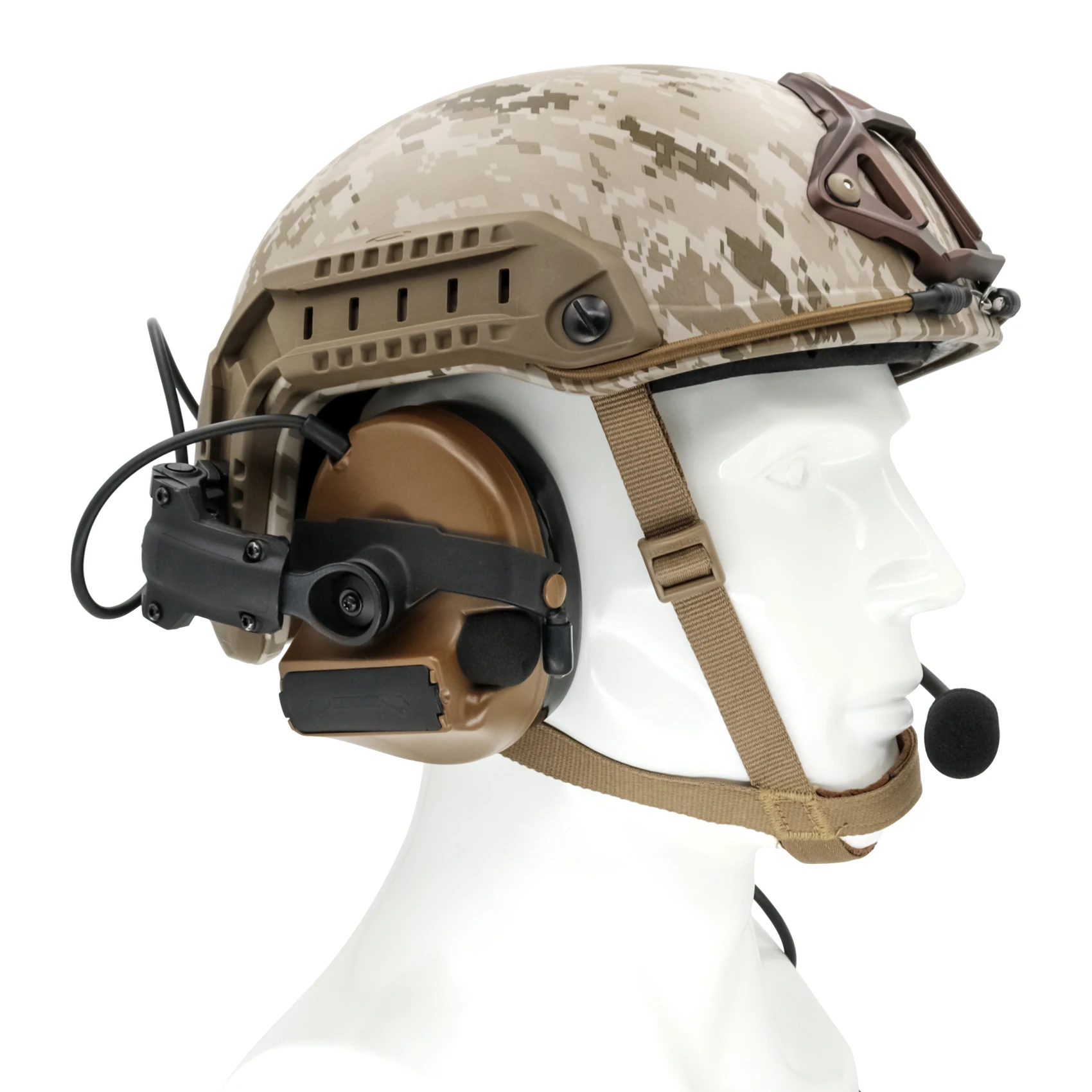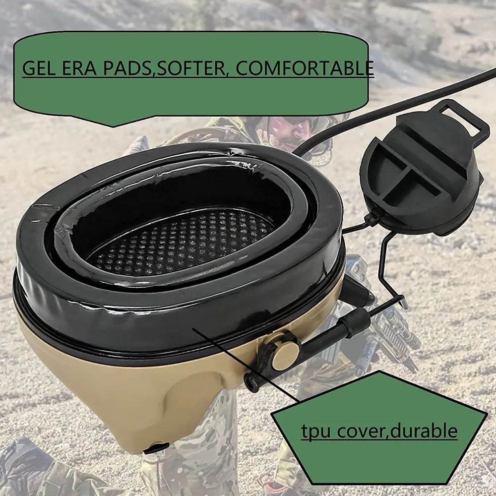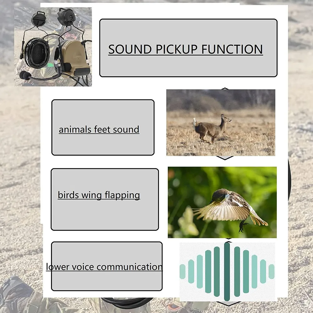 HearangelТактическая гарнитура Comtac ii с адаптером ARC rail, защитой слуха и гелевыми амбушюрами, звукоснимателями и шумоподавляющими наушникамиПримечание: В комплект поставки не входят шлемы.* ABS* Защита чипа-чип наушников COMTAC II хорошо защищен слоем пленки и обладает высокой защитой, плесени, пыли и влагостойкостью.* Изогнутая версия адаптера трека совместима с изогнутыми боковыми шлемами трека и может висеть за ушами, когда страйкбола гарнитуры не нужны, и амбушюры предоставляются.* Наушники Airsoft используют высококачественные мягкие звукоизоляционные гелевые амбушюры, которые удобны в использовании, имеют хорошую звукоизоляцию и обеспечивают хорошую среду общения.* Два микрофона слева и справа, электронная функция автоматического захвата, наушники дополнят экологические звуки, такие как звуки ног, вместо того, чтобы полностью изолировать внешние звуки.* Тактические гарнитуры идеально подходят для тактических игр, занятий страйкболом, стрельбы или для тех, кто хочет общаться в шумной среде.* Защита слуха может предотвратить внезапные выстрелы и взрывы. И автоматически отключает функцию пикапа, эффективно снижает шум окружающей среды, используйте 2 батарейки АА (не входят в комплект).