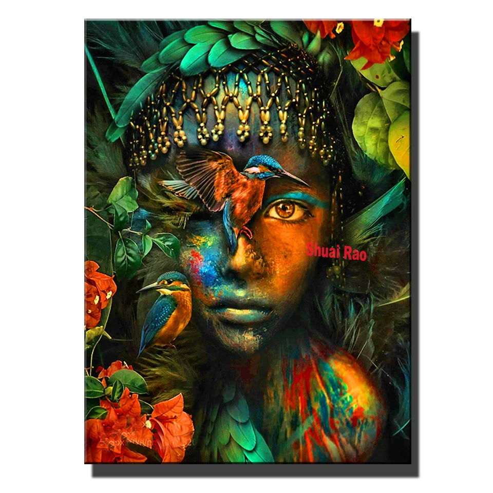Полноразмерная, квадратная, круглая, сделай сам, алмазная живопись, фантазия, Африканская женщина, птица, картина стразы, мозаика, полная вышивка, украшение для дома